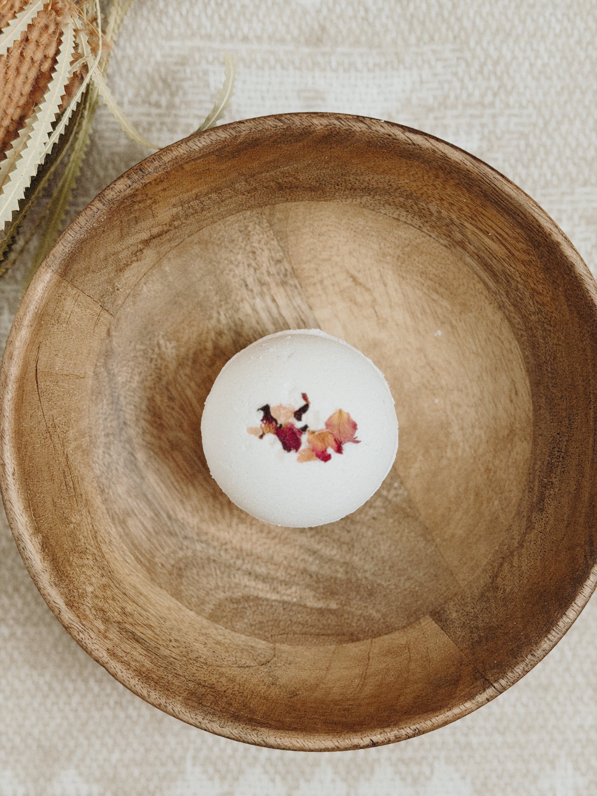 Drift into a moment of calm with a bath inspired by sun-warmed earth and quiet desert beauty. Crafted with a simple blend of sodium bicarbonate and citric acid, our bath bombs create a gentle, effervescent fizz as they slip into warm water and slowly bloom. Arrowroot powder lends a silky softness to the bath, while rich shea butter melts to nourish and comfort the skin. As the steam rises, a whisper of pure essential oils fills the air with a warm, natural aroma—transforming your bath into a soothing, desert-inspired oasis and inviting you to slow down, breathe deeply, and soak in the moment.