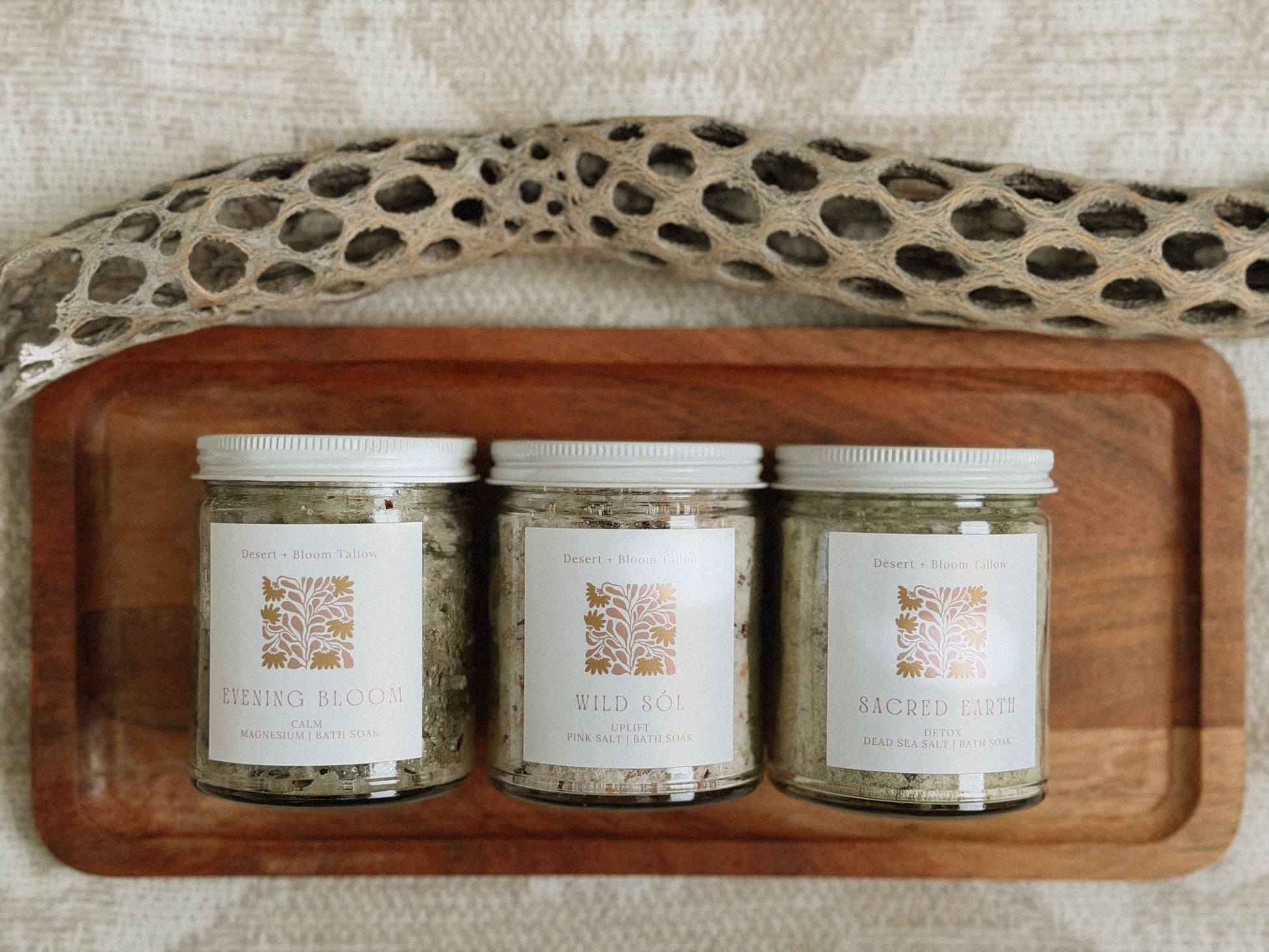 Inspired by quiet desert mornings, sun-warmed earth, and the slow unfolding of wildflowers after rain, Desert & Bloom Tallow bath salts invite you into a moment of restoration. Each blend is crafted as a small ritual—an intentional pause where mineral-rich salts, botanical powders, and aromatic essential oils come together to soften the body and quiet the mind.