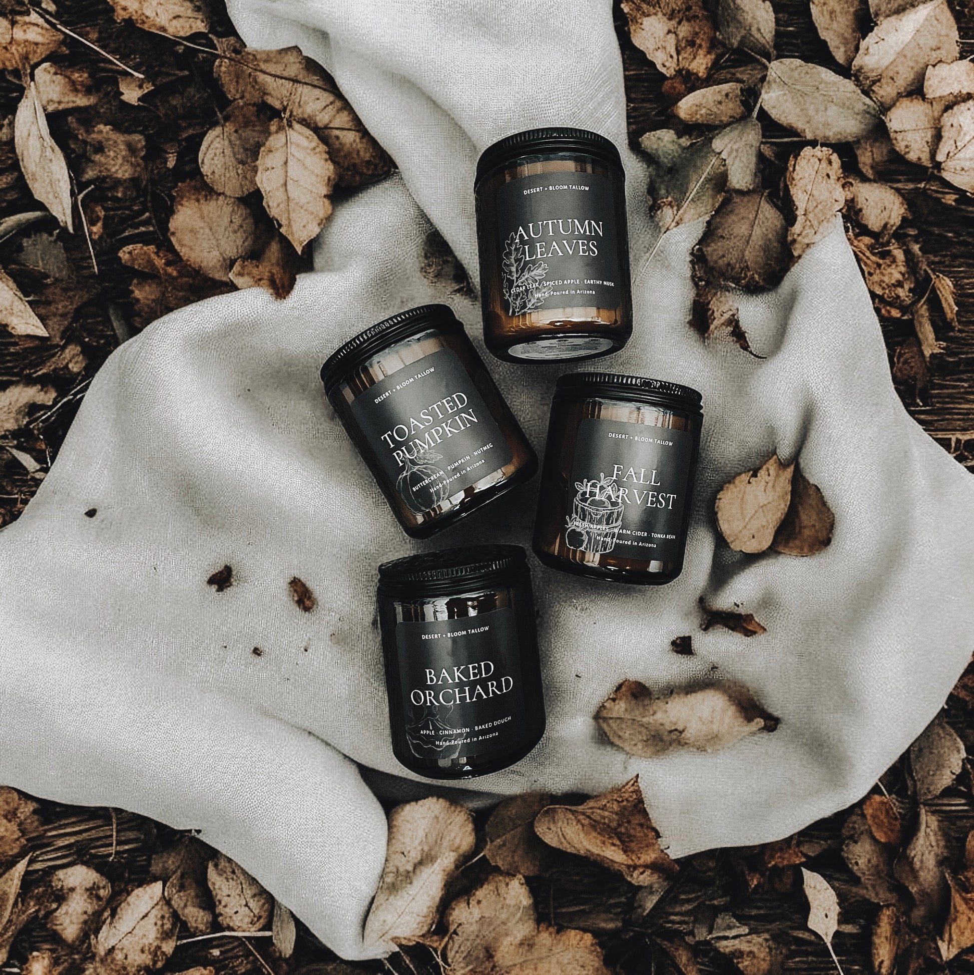 Desert + Bloom Tallow “Seasonal” hand-poured candles. These are made in small batches using our Grass Fed + Finished Beef Tallow, Organic Beeswax, Organic Hemp Wicks + non-toxic, phthalate-free fragrances.