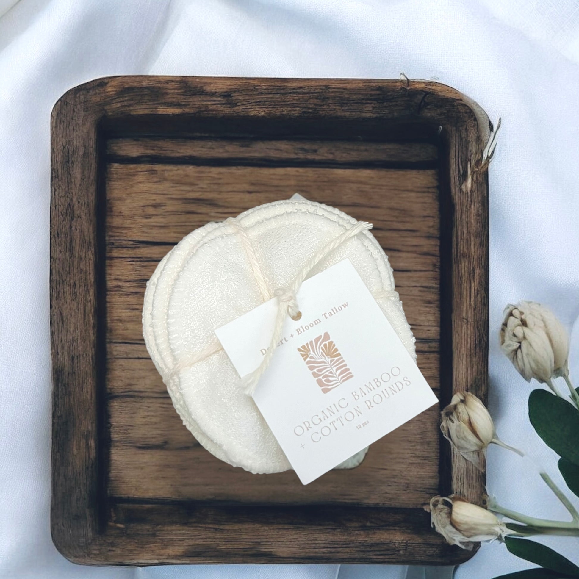 Apply your favorite Desert + Bloom Tallow cleanser to the pad and wipe gently. After use, rinse and place in a laundry bag for washing.