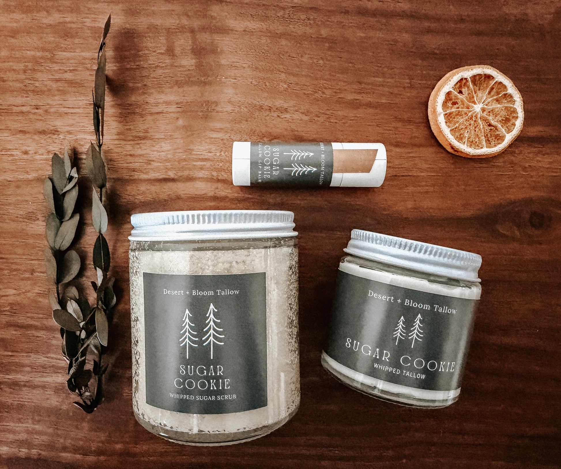 Whipped Tallow Lotion • Whipped Tallow Sugar Scrub • Sugar Cookie Lip Balm